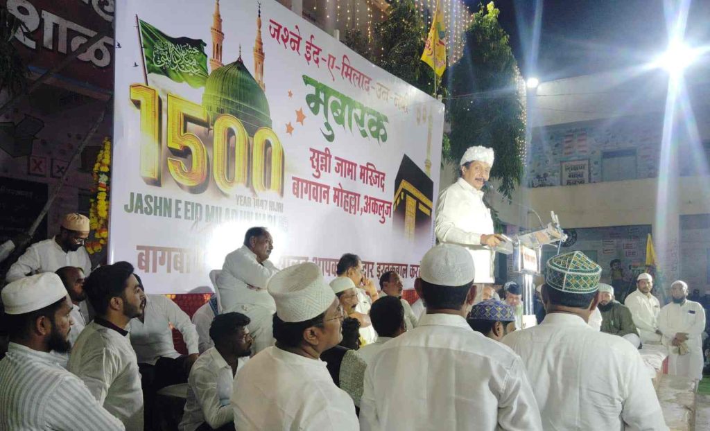 ईद मिलादुन्नबीच्या सोहळ्यामुळे अकलूजमध्ये श्रद्धा, प्रेम आणि ऐक्याचा संदेश पसरला. शहराचे वातावरण शांती, मानवता आणि एकतेच्या दिव्य प्रकाशाने उजळून निघाले.