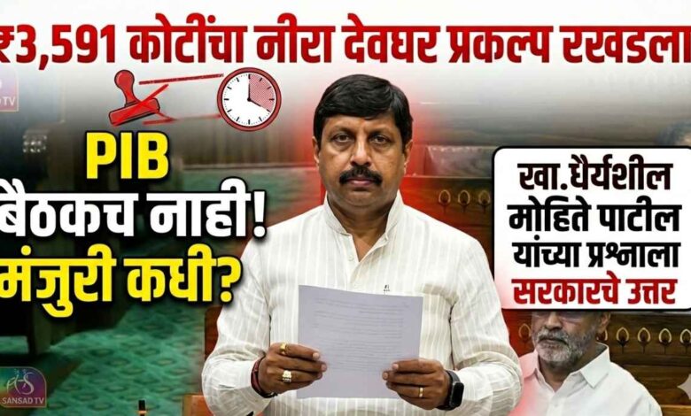 ₹3,591 कोटींचा नीरा देवघर प्रकल्प रखडला, PIB बैठकच नाही, मंजुरी कधी? ; खा.धैर्यशील मोहिते पाटील यांच्या प्रश्नाला सरकारचे उत्तर